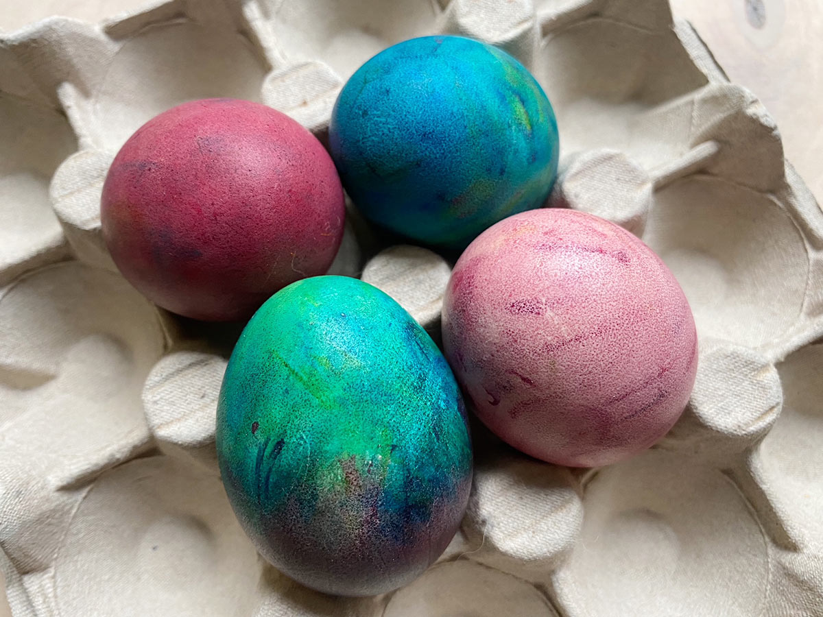 Jeśli po wytarciu jajka są zbyt mało pofarbowane, spróbujcie ponownie obtoczyć je w pianie i potrzymać chwilkę dłużej.
