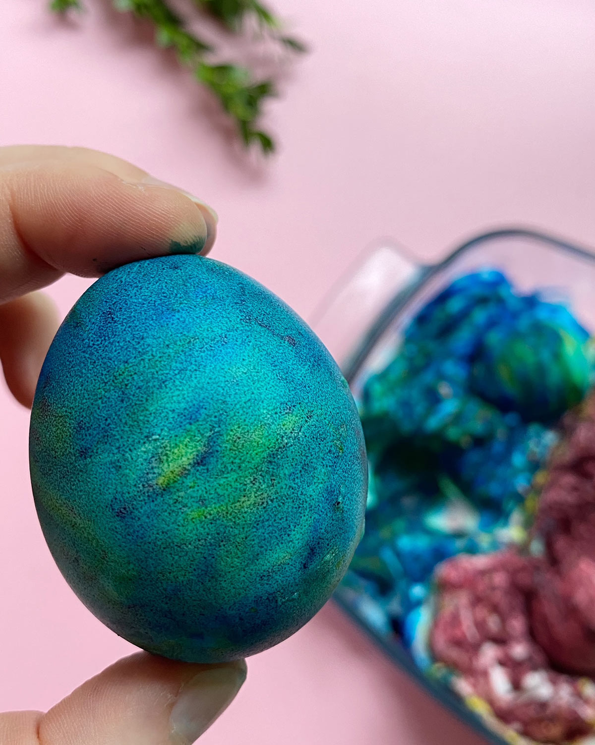 4. Wkładamy jajka do kolorowej piany i obtaczamy. W zależności od intesywności barwnika możemy od razu je wyciągnąć lub odczekać kilkanaście minut zanim je wyciągniemy.