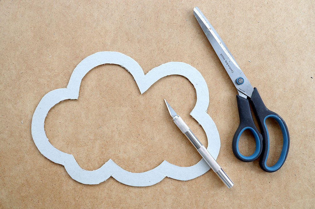 Z grubego kartonu wycinamy kształt chmury o brzegu grubości np. 2cm.