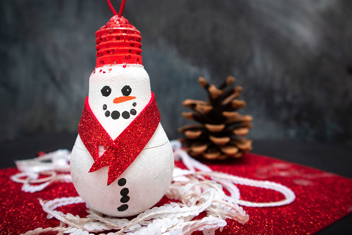 Przykładem takiej ozdoby z recyklingu jest bardzo prosty projekt świąteczny, który z powodzeniem wykona każdy maluch. Uroczy bałwanek na pewno stanie się centralnym punktem choinki i dumą małego artysty a do jego wykonania użyjemy starej żarówki, więc będzie to prawdziwy projekt zero waste.