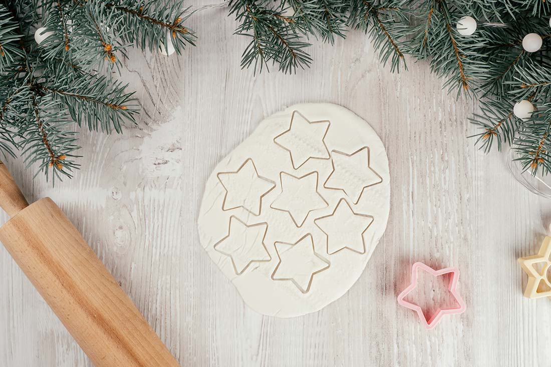 Gdy masa porcelanowa jest już wyrobiona, czas przejść do wałkowania. Następnie wycinamy z masy dowolny kształt. Najlepiej wykorzystać do tego foremki do ciasta.