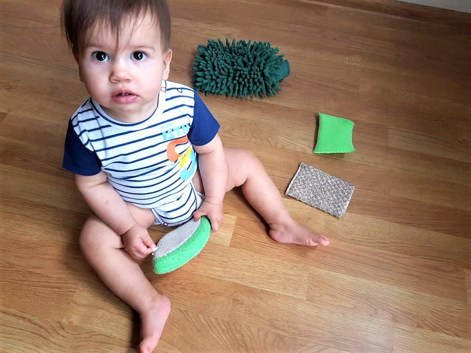 Niemowlaki chętnie sięgają po rzeczy, które nie są wcale zabawkami, zwłaszcza jeśli często widzą je w rękach rodzica. Pozwólmy im (oczywiście pod naszym nadzorem) na eksplorację domowej przestrzeni, doświadczanie różnych faktur oraz wkładanie bezpiecznych przedmiotów do buzi – mocno uwrażliwiona strefa wokół ust jest dla maluszków najlepszym źródłem informacji nt. struktury, materiału, kształtu, temperatury danego przedmiotu. Butelki z grochem lub ryżem, woreczki sensoryczne z różnorodnym wypełnieniem, gniotki z kolorowych balonów, balony z cekinami lub ziarnami, butelki wypełnione wodą z wirującymi elementami, drewniane łyżki i miski, bańki mydlane, gąbki, myjki, poduchy, koce, kartony, czy pudełka – to maluchy uwielbiają najbardziej.