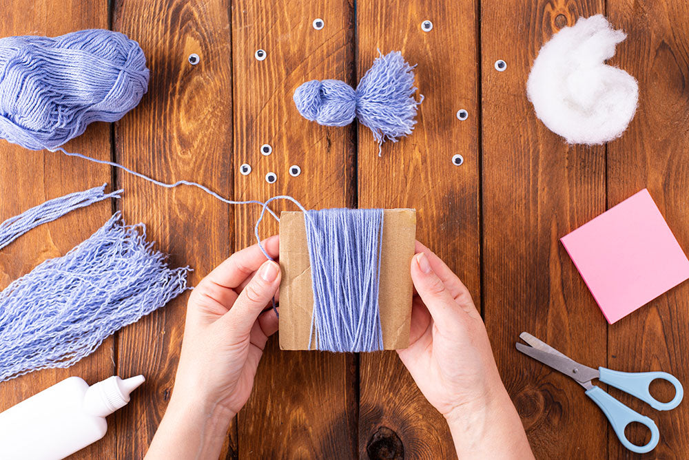 Na karton o szerokości ok. 10 cm nawijamy włóczkę.