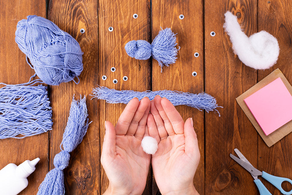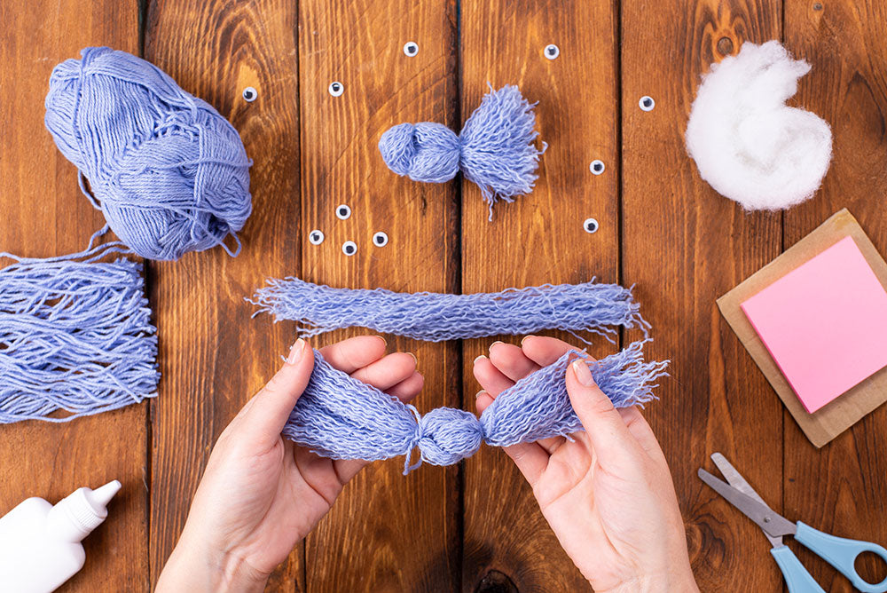 Starsze dzieci mogą spróbować stworzyć sikorkę lub gila używając do tego kilku kolorów włóczki.