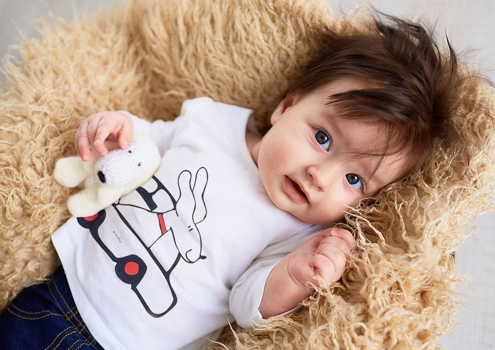 Wyszukane ubranka zostaw na późniejsze lata dziecka a póki maluszek głównie leży postaw na komfort i proste kroje. Wygląd stroju możesz nadrobić uroczymi obrazkami lub napisami na bodziakach, pajacach czy koszulkach. Słodka ilustracja z bezpiecznych, ekologicznych farb wodnych będzie wystarczającą ozdobą odzieży maluszka w pierwszych miesiącach jego życia.