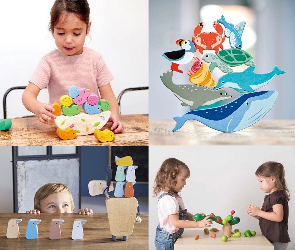 Balansujące układanki złożone z wielu figurek są tu idealnym przykładem. Dziecko znajdzie mnóstwo sposobów, aby je wykorzystać. Jako grę, w której dokładamy kolejne figurki uważając, aby konstrukcja się nie przewróciła, np. Balansujący kaktus od Janod. Jako urocze figurki do zabawy, które można użyć np. do odgrywania scenek, np. Krąg polarny od Tender Leaf dzięki, któremu Twoje dziecko przeniesie się na Biegun Północny.