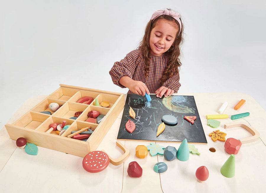 Kolejna perełka od Tender Leaf to nagrodzona Junior Design Awards skrzynia pełna klocków - My Forest Floor, nawiązujących do skarbów natury. Taki zestaw będzie idealnym prezentem rozwijającym kreatywność i zajmującym dzieci na długie godziny.