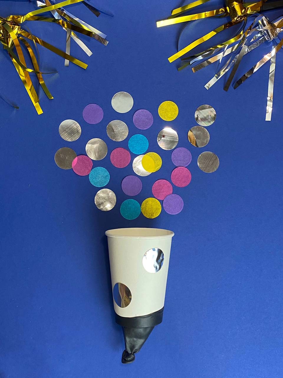 Czas na zabawę! Wystarczy wsypać do kubeczka konfetti, pociągnąć za część balona z supełkiem, wycelować i puścić, wówczas nasza armatka wyrzuca w powietrze kolorowe konfetti. Przy naciąganiu najlepiej wycelować supełkiem w środek, wówczas siła wyrzutu konfetti jest największa.