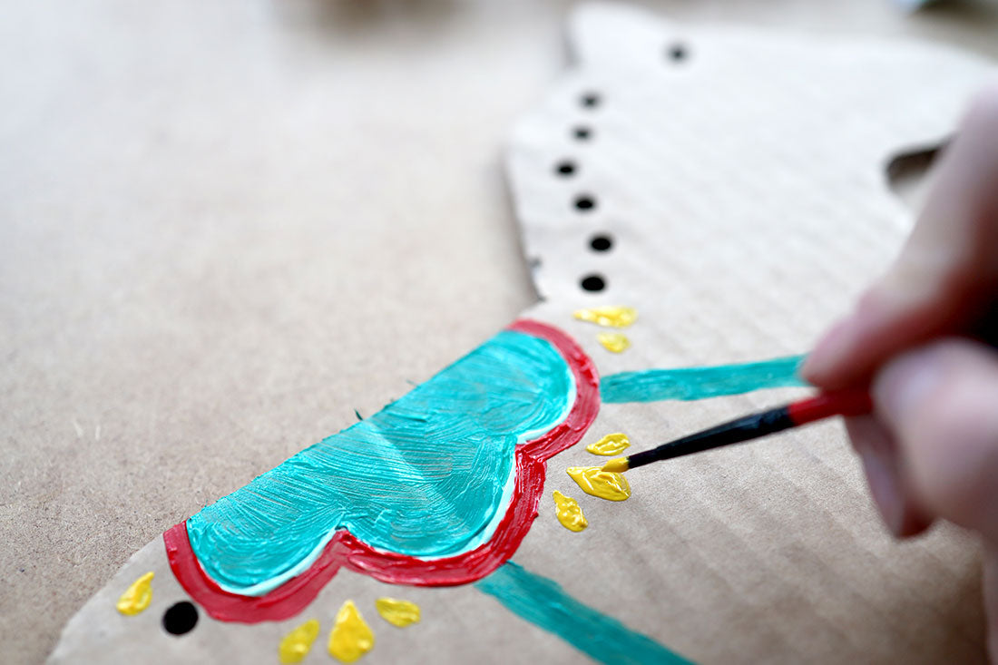 Kolejnym etapem jest namalowanie kolorowych wzorów na tułowiu i nogach. Możesz wzorować się na tradycyjnych ornamentach lub wymyśleć własne. Jeśli maluch ma problemy z ozdobieniem konika może wykonać kilka prostych szlaczków, kropek lub inne podstawowe wzory i kształty.