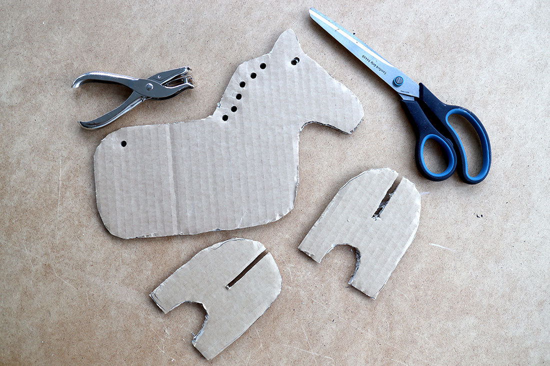W miejscu na ogon i grzywę robimy dziurki dziurkaczem.