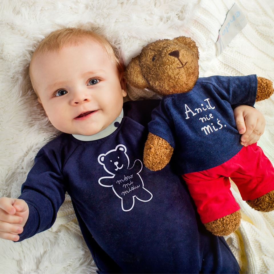 Linie Przytulasy i Mów mi misiu oferują multum ubranek z motywami misia w kolorach niebieskim i różu oraz uniwersalnym granacie a także żywym żółtym kolorze z uzupełniającymi barwami bieli i beżu.